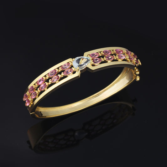 Rainbow Aquamarine & Pink Tourmaline Openable Bangle