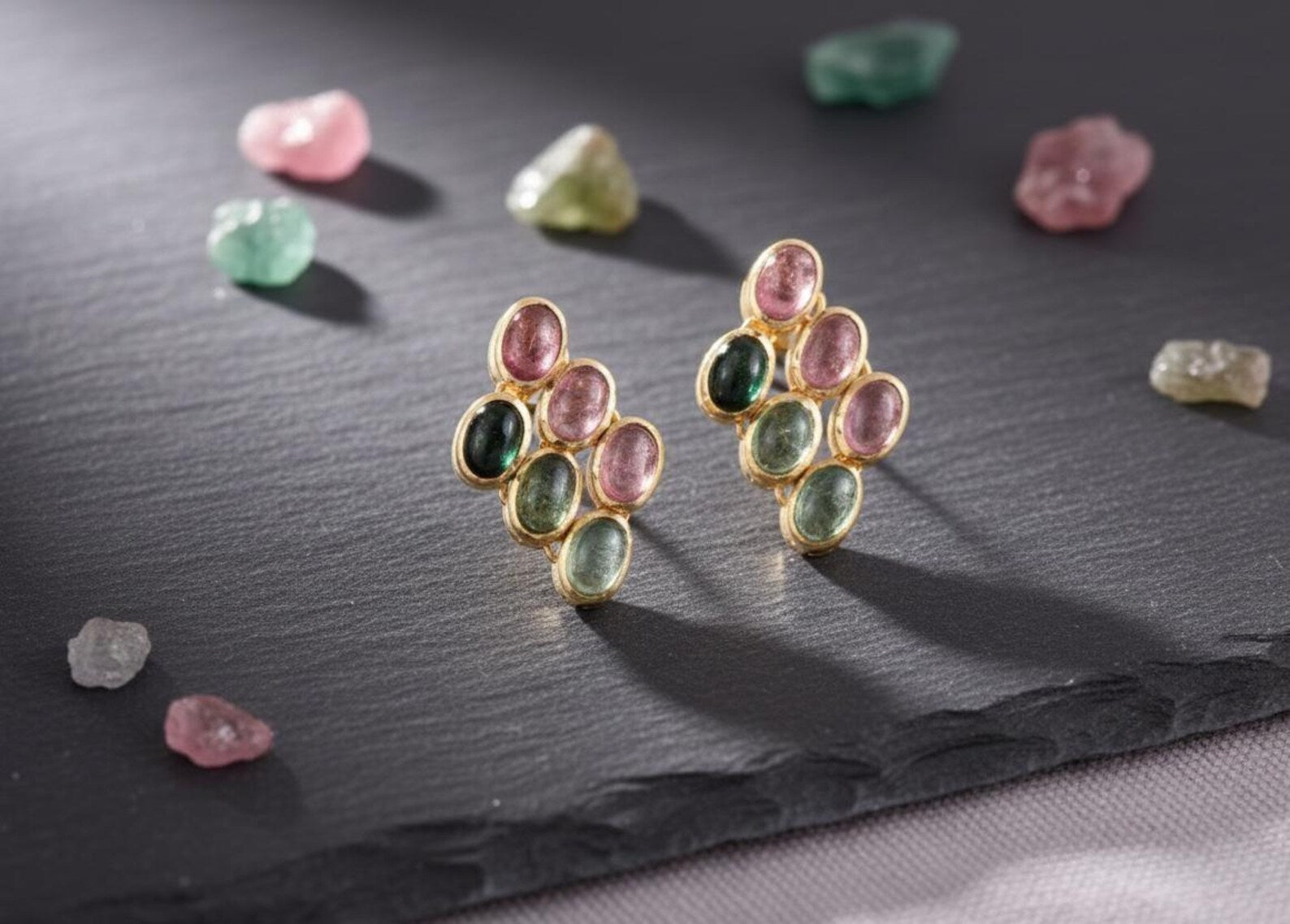 Rainbow Aquamarine & Pink Tourmaline Openable Bangle