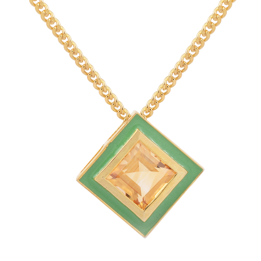 Square Citrine Enamel Hued Chain Necklace