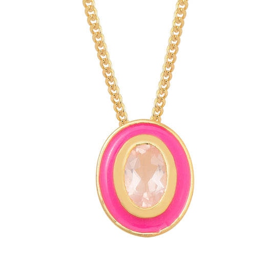 Oval Rose Quartz Enamel Silver Necklace