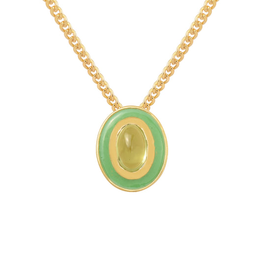 Dainty Oval Peridot Enamel Chain Necklace