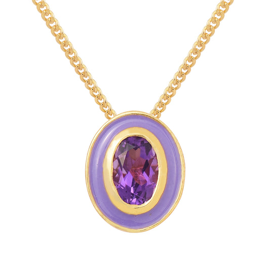 Oval Amethyst Enamel Silver Necklace