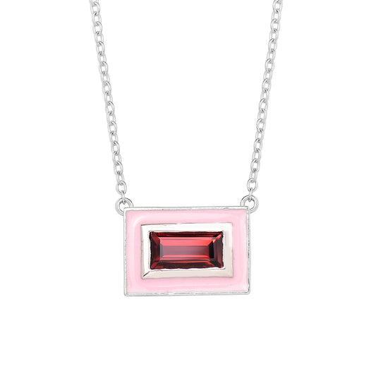 Delicate Baguette Garnet Enamel Necklace