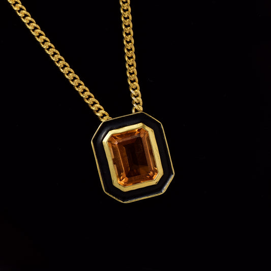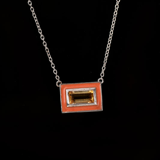 Octagon Citrine Enamel Silver Necklace