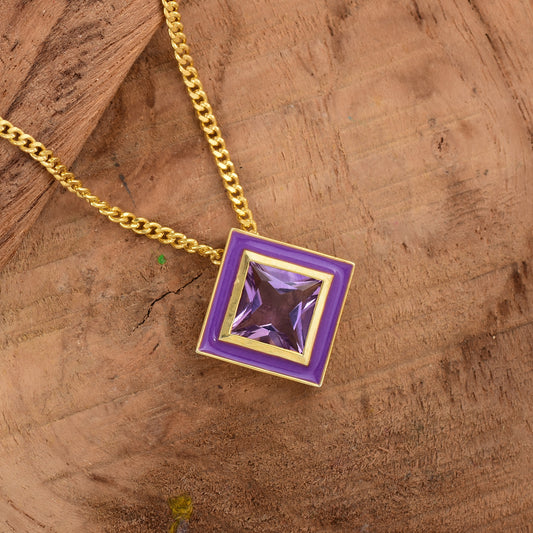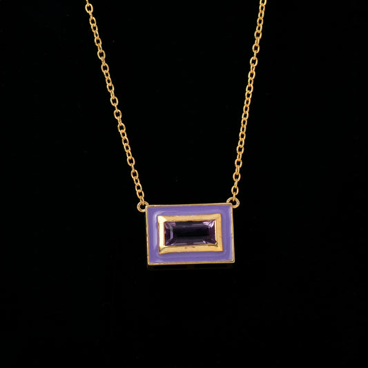 Square Amethyst Enamel Dainty Necklace