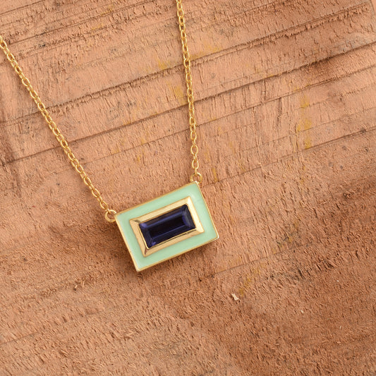 Baguette Iolite Enamel Silver Necklace