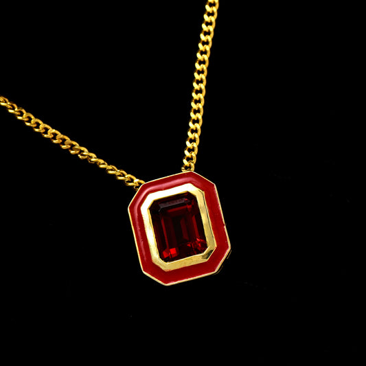 Octagon Garnet Enamel Chain Necklace