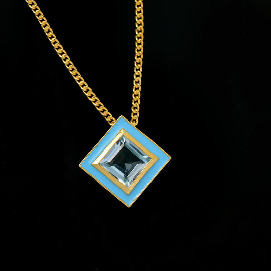 Square Blue Topaz Enamel Chain Necklace