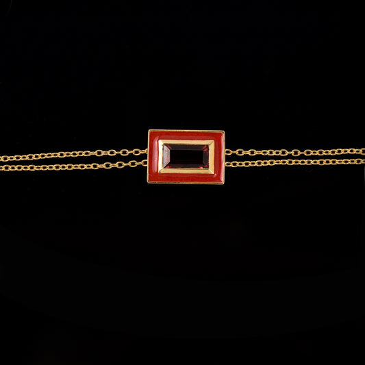 Octagon Garnet Enamel Chain Necklace