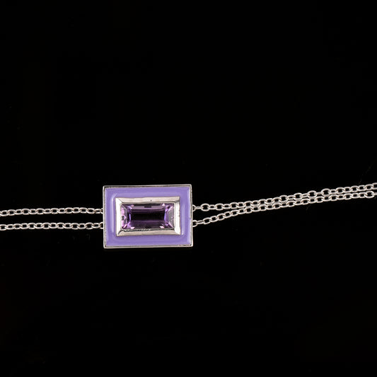 Baguette Amethyst Enamel Silver Chain Necklace