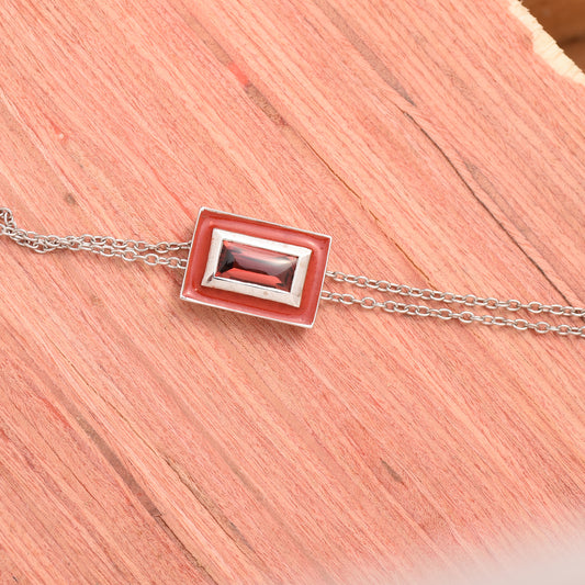 Delicate Baguette Garnet Enamel Necklace