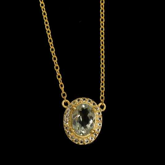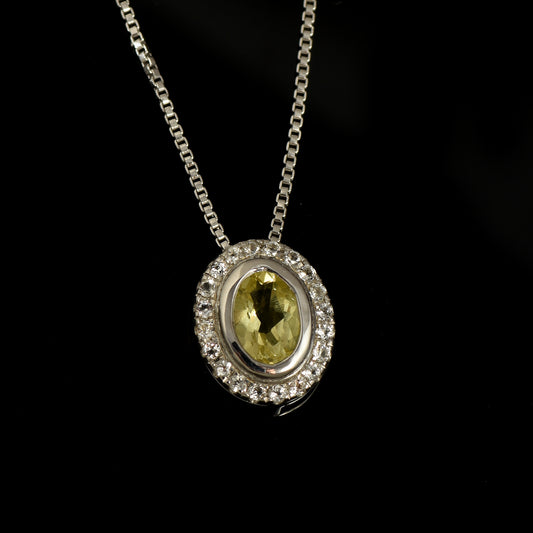 Oval Lemon Quartz Halo Necklace