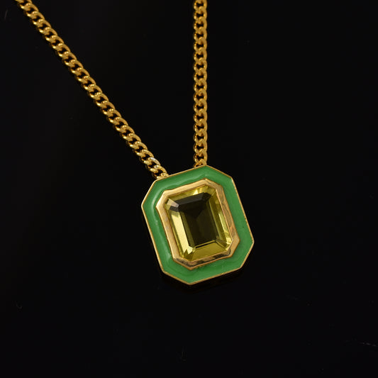Octagon Lemon Quartz Enamel Chain Necklace