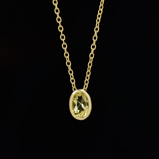 Oval Cut Lemon Quartz Solitaire Necklace