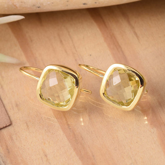Lemon Quartz Cushion Plain Earrings