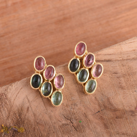Cabochon Multi Tourmaline Earrings