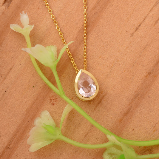 Pear Rose Quartz Solitaire Chain Necklace