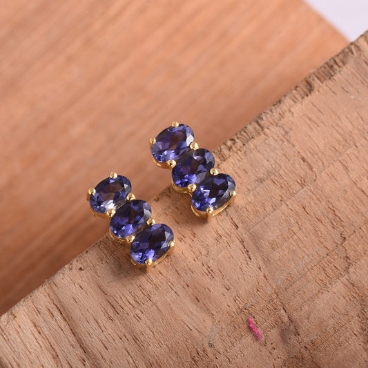 Natural Iolite Stud Earrings