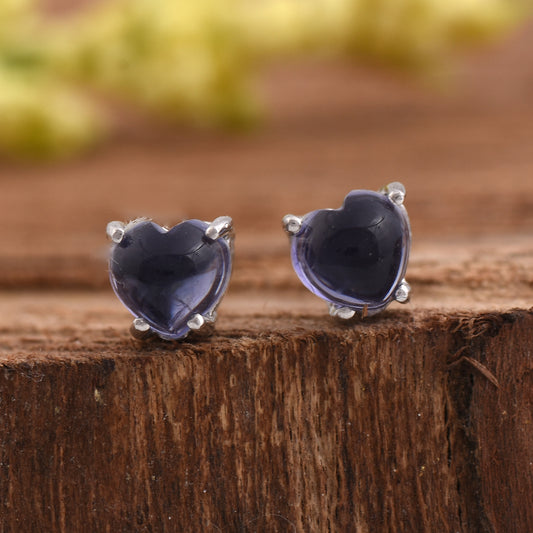 Heart Iolite Solitaire Stud Earrings